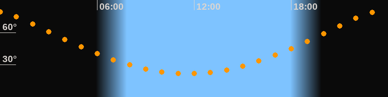 | Höchster Stand (Kulmination) | 23:35 Uhr (h = 79,7°) |