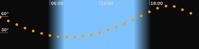 | Höchster Stand (Kulmination) | 20:18 Uhr (h = 79,7°) |