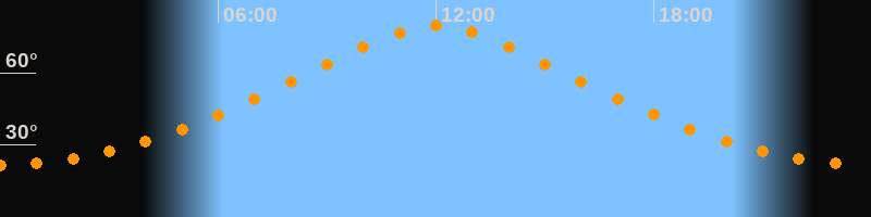 | Höchster Stand (Kulmination) | 12:00 Uhr (h = 79,7°) |