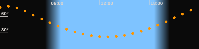 Höchster Stand (Kulmination)00:49 Uhr (h = 79°)