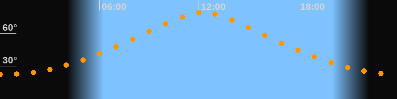 | Höchster Stand (Kulmination) | 12:15 Uhr (h = 79°) |