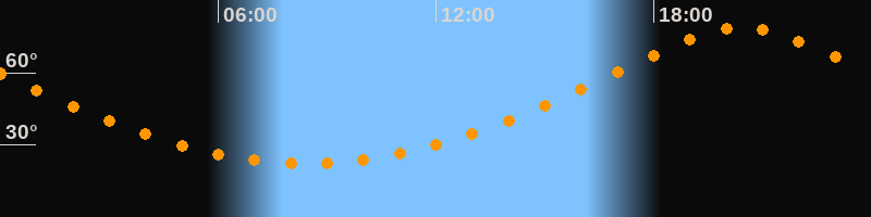 | Höchster Stand (Kulmination) | 20:26 Uhr (h = 79°) |