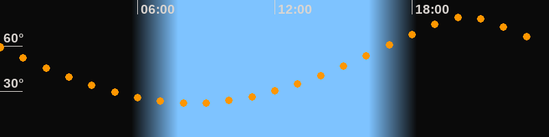 | Höchster Stand (Kulmination) | 20:22 Uhr (h = 79°) |