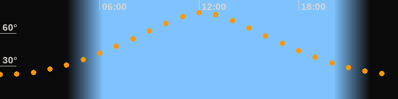 | Höchster Stand (Kulmination) | 12:11 Uhr (h = 79°) |