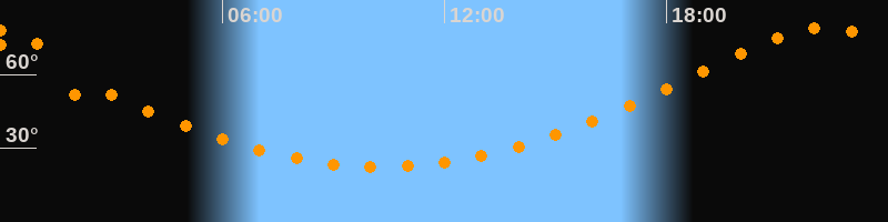 Höchster Stand (Kulmination)22:17 Uhr (h = 79°)