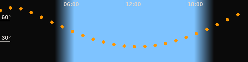 | Höchster Stand (Kulmination) | 01:13 Uhr (h = 79°) |