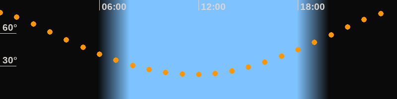 | Höchster Stand (Kulmination) | 23:38 Uhr (h = 79°) |