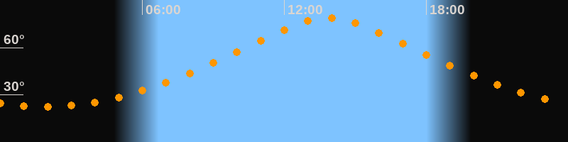 | Höchster Stand (Kulmination) | 13:52 Uhr (h = 79°) |