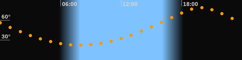 | Höchster Stand (Kulmination) | 19:54 Uhr (h = 79°) |