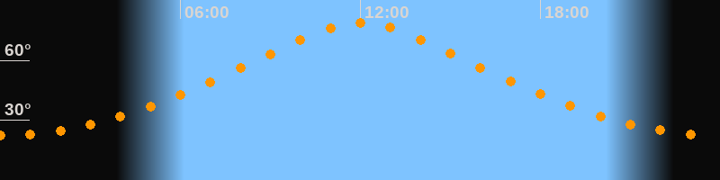 | Höchster Stand (Kulmination) | 12:00 Uhr (h = 79°) |