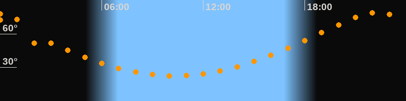 | Höchster Stand (Kulmination) | 22:19 Uhr (h = 79°) |