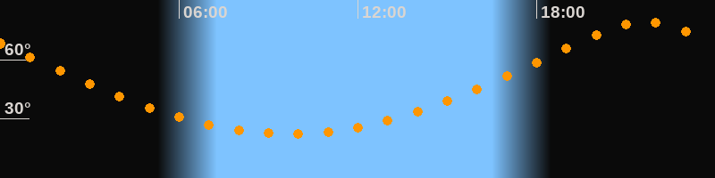 | Höchster Stand (Kulmination) | 21:39 Uhr (h = 79°) |