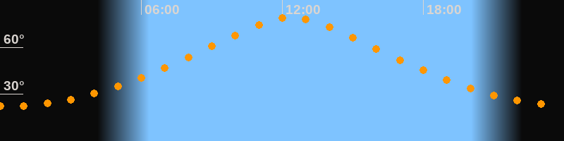 | Höchster Stand (Kulmination) | 12:22 Uhr (h = 79°) |