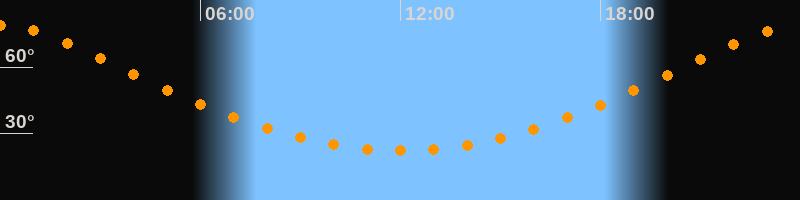 | Höchster Stand (Kulmination) | 23:59 Uhr (h = 79°) |