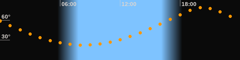 | Höchster Stand (Kulmination) | 20:19 Uhr (h = 79°) |