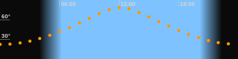 | Höchster Stand (Kulmination) | 12:08 Uhr (h = 79°) |
