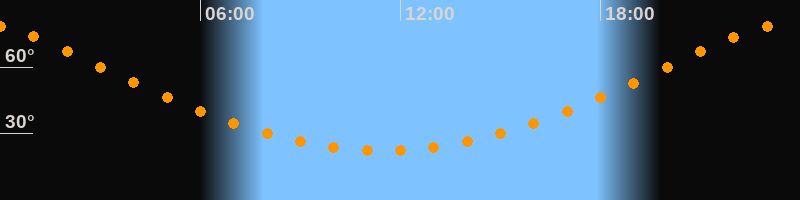 | Höchster Stand (Kulmination) | 23:28 Uhr (h = 79°) |