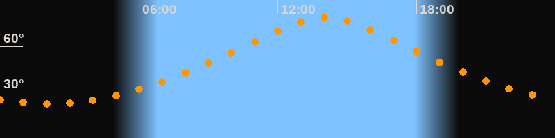 | Höchster Stand (Kulmination) | 14:03 Uhr (h = 79°) |