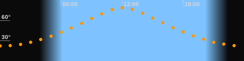 | Höchster Stand (Kulmination) | 12:02 Uhr (h = 79°) |