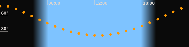 | Höchster Stand (Kulmination) | 00:22 Uhr (h = 79°) |