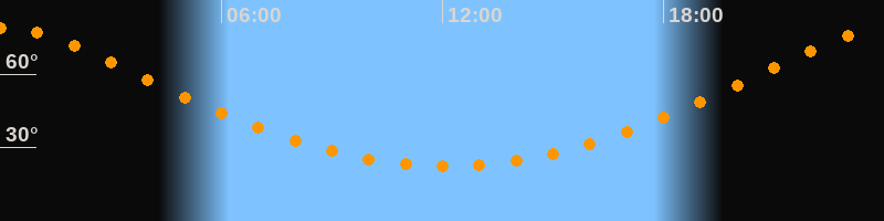 | Höchster Stand (Kulmination) | 00:06 Uhr (h = 79°) |
