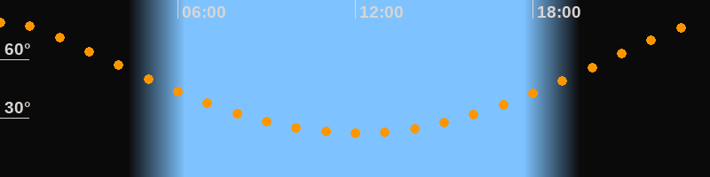 | Höchster Stand (Kulmination) | 00:03 Uhr (h = 79°) |
