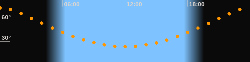| Höchster Stand (Kulmination) | 23:59 Uhr (h = 79°) |