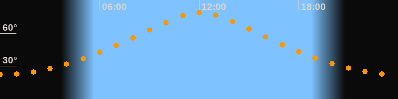 | Höchster Stand (Kulmination) | 12:03 Uhr (h = 79°) |