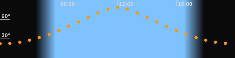| Höchster Stand (Kulmination) | 12:00 Uhr (h = 79°) |