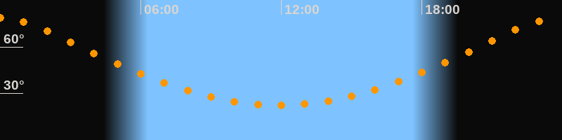 | Höchster Stand (Kulmination) | 23:54 Uhr (h = 79°) |