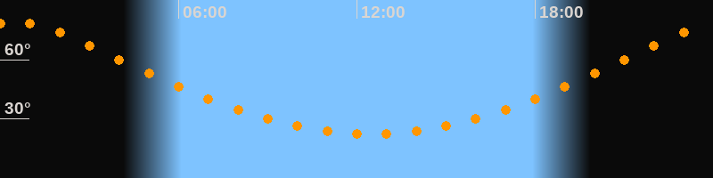 | Höchster Stand (Kulmination) | 00:27 Uhr (h = 79°) |