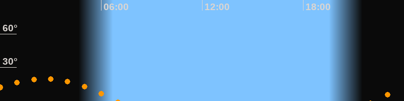 | Untergang | 06:58 Uhr im Südwesten (αAz = 239,4°) |