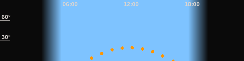 | Höchster Stand (Kulmination) | 12:42 Uhr (h = 20°) |
