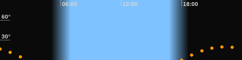 | Aufgang | 17:55 Uhr im Südosten (αAz = 120,6°) |
