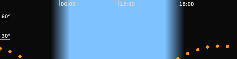 | Aufgang | 17:47 Uhr im Südosten (αAz = 120,6°) |
