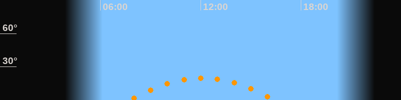 | Höchster Stand (Kulmination) | 12:05 Uhr (h = 20°) |