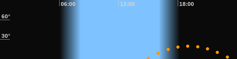 | Aufgang | 14:44 Uhr im Südosten (αAz = 120,6°) |
