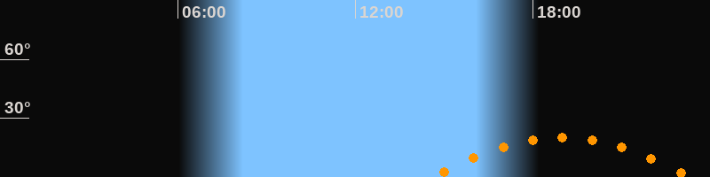 | Höchster Stand (Kulmination) | 18:59 Uhr (h = 20°) |