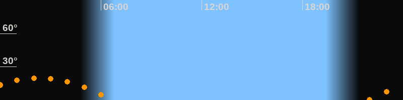 | Aufgang | 21:54 Uhr im Südosten (αAz = 120,6°) |