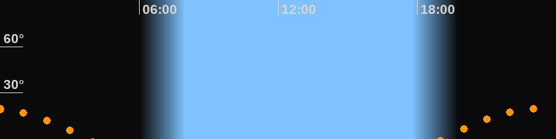 | Aufgang | 19:01 Uhr im Südosten (αAz = 120,6°) |