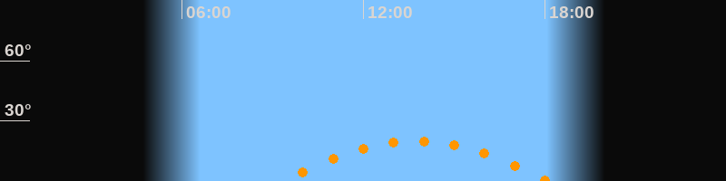 | Höchster Stand (Kulmination) | 13:44 Uhr (h = 20°) |