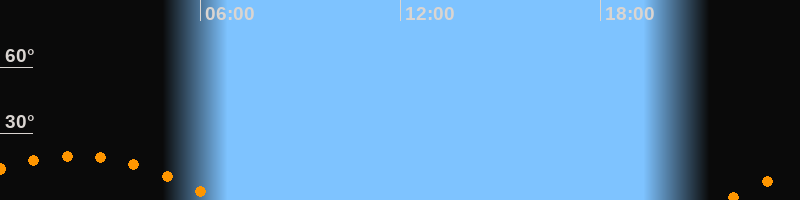 | Untergang | 06:35 Uhr im Südwesten (αAz = 239,4°) |