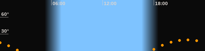 | Aufgang | 17:30 Uhr im Südosten (αAz = 120,6°) |