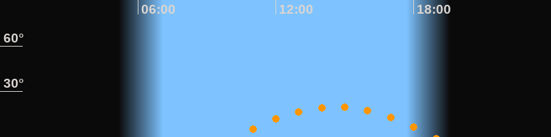 | Höchster Stand (Kulmination) | 14:36 Uhr (h = 20°) |