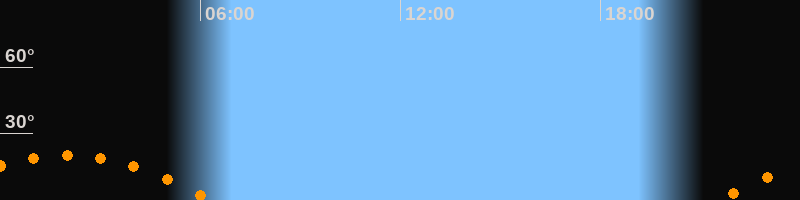 | Untergang | 06:21 Uhr im Südwesten (αAz = 239,4°) |