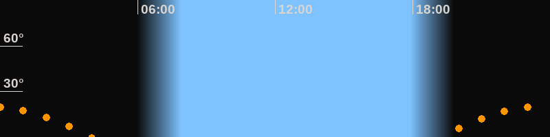 Aufgang19:10 Uhr im Südosten (αAz = 120,6°)