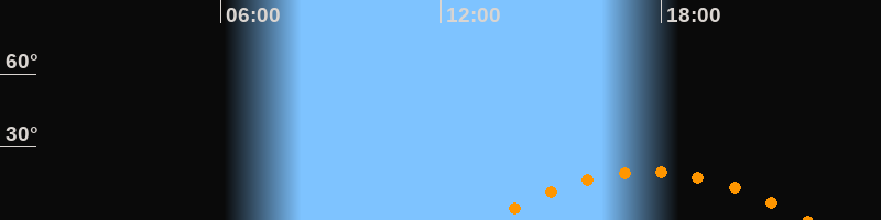 | Aufgang | 13:15 Uhr im Südosten (αAz = 120,6°) |