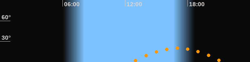 | Aufgang | 12:40 Uhr im Südosten (αAz = 120,6°) |