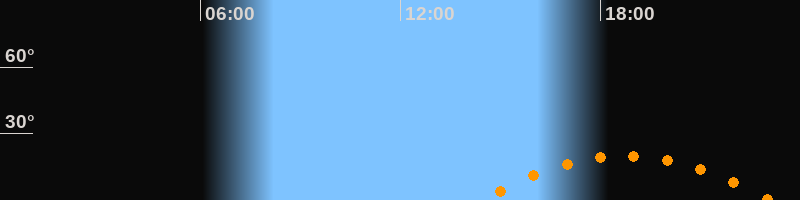 | Höchster Stand (Kulmination) | 18:46 Uhr (h = 20°) |