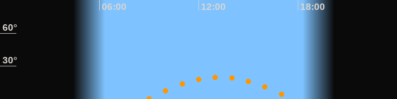 | Höchster Stand (Kulmination) | 13:15 Uhr (h = 20°) |